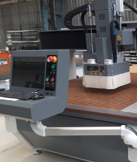 Pracujemy na wielkoformatowym centrum obróbczym CNC BPFT 2131 o polu pracy 2100 x 3100 x 300 mm i mocy wrzeciona 9 kw z automatyczną wymianą narzędzi z magazynem obrotowym. Obrabiamy materiały w 2D oraz 3D. Posiadamy dodatkową głowicę aktywną z nożem oscylacyjnym oraz możliwość obróbki agregatem kątowym. Wysoką jakość obrabianych detali uzyskujemy dzięki zastosowaniu wysokoobrotowego wrzeciona, które pozwala uzyskać dobre powierzchnie frezowane.